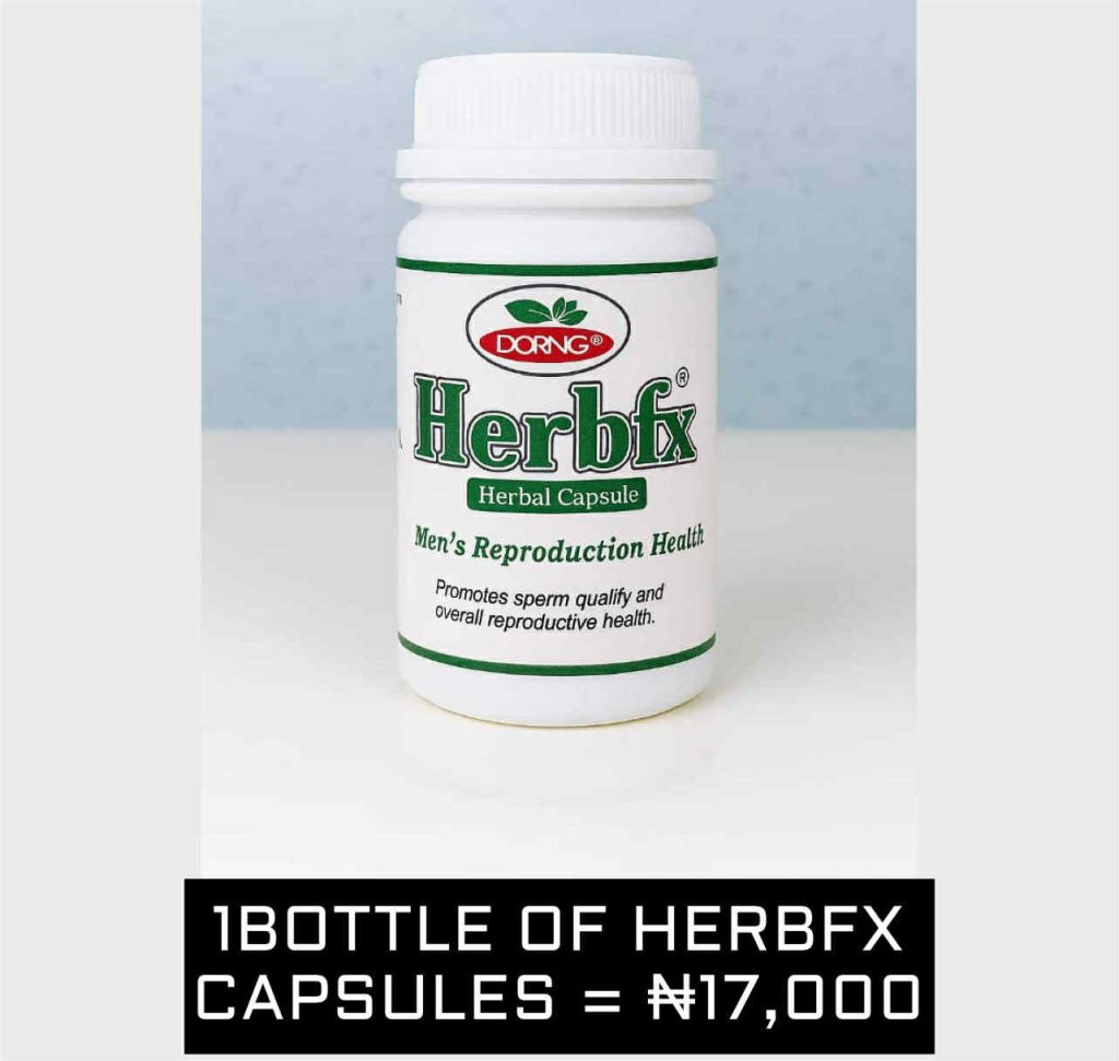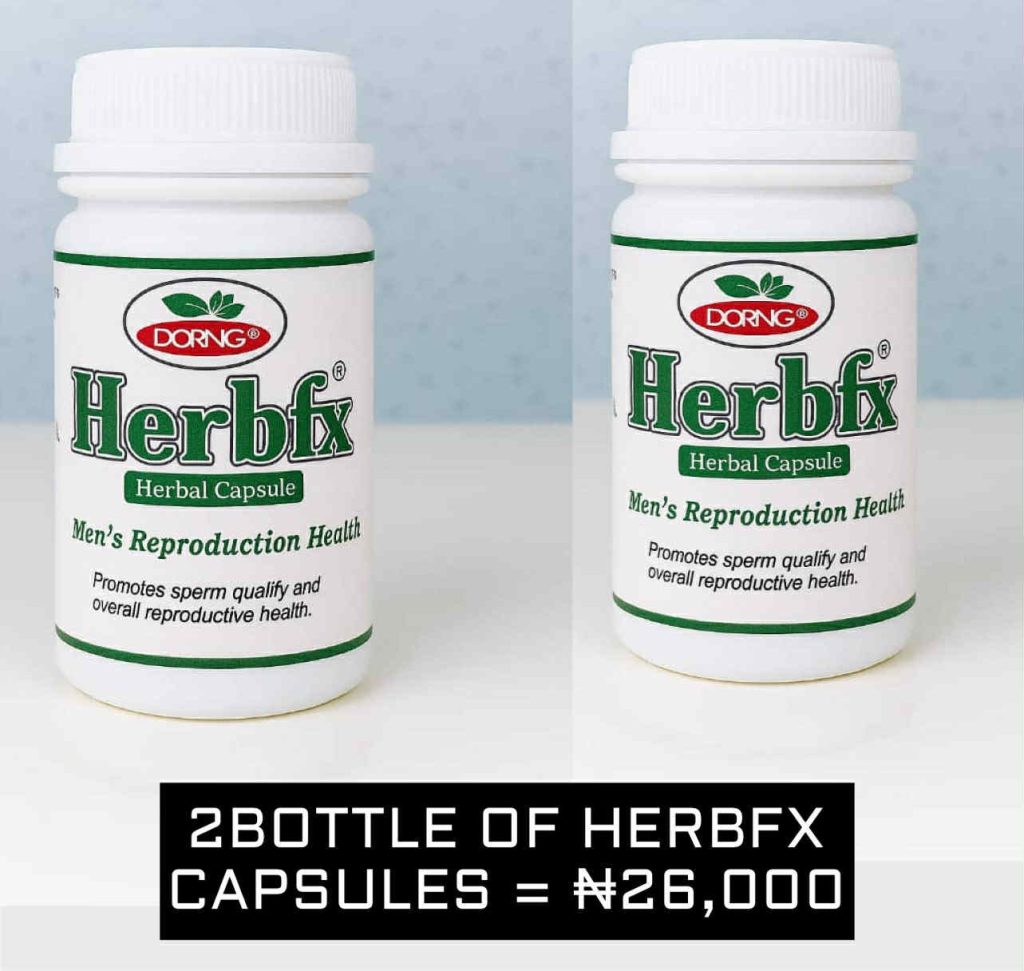 Herbfx herbal capsule is a 100% herbal formula, carefully crafted from potent roots and herbs that are traditionally known and scientifically proven to support male reproductive health effectively, such as Azoospermia, low sperm count, weak sperm motility, varicocelle and other conditions that affect sperm health, with no harmful side effects. It is 100% guarantee and nafdac approved.